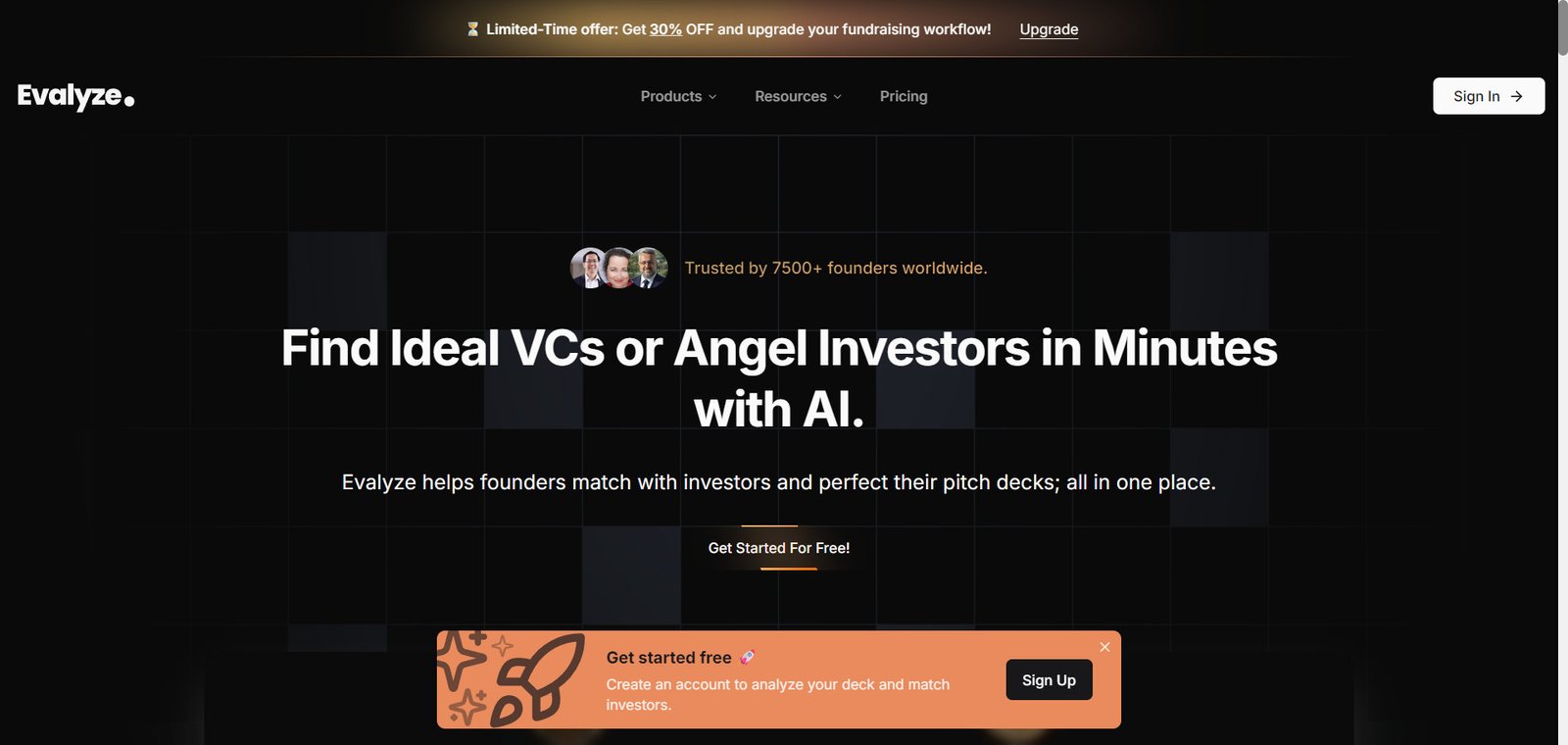 Verdict: Evalyze stands out by combining investor discovery + pitch optimization, whereas most competitors focus on only one of these areas.